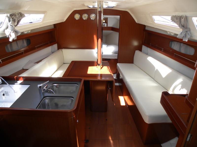 Doccetta in pozzetto calda e fredda, verricello elettrico salpa ancora, radio lettore CD, randa avvolgibile, genoa avvolgibile, vhf, log, ecoscandaglio, gps, autopilota, boiler, frigo, paraspruzzi, bimini, tavolo in pozzetto, tender, dotazioni di sicurezza entro 12 MM, 3 batterie, pulpito di prua aperto. |